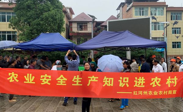 结合防灾减灾日活动,5月12日,红河州农业农村局党组成员、副局长马建泽带领各农业重点行业科室和单位工作人员30余人赴元阳县牛角寨镇开展农业安全生产“进农村”宣传活动,着力强化安全生产宣传培训教育,向广大农户全面普及农业安全生产知识,从源头上遏制安全生产事故发生。