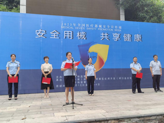 7月10日,2023年“全国医疗器械安全宣传周”红河州启动仪式在河口举行。州市场监管局、州不良反应与药物滥用监测中心、河口县市场监管局、河口县人民医院相关人员,以及一心堂、健之佳等企业代表共计80余人参加活动。州市场监管局副局长李福珍在启动仪式上致辞,并深入云南自贸区红河片区开展医疗器械产业政策宣贯解读,进一步释放政策红利,全力推动我州医药、医疗、健康产业高质量发展。
