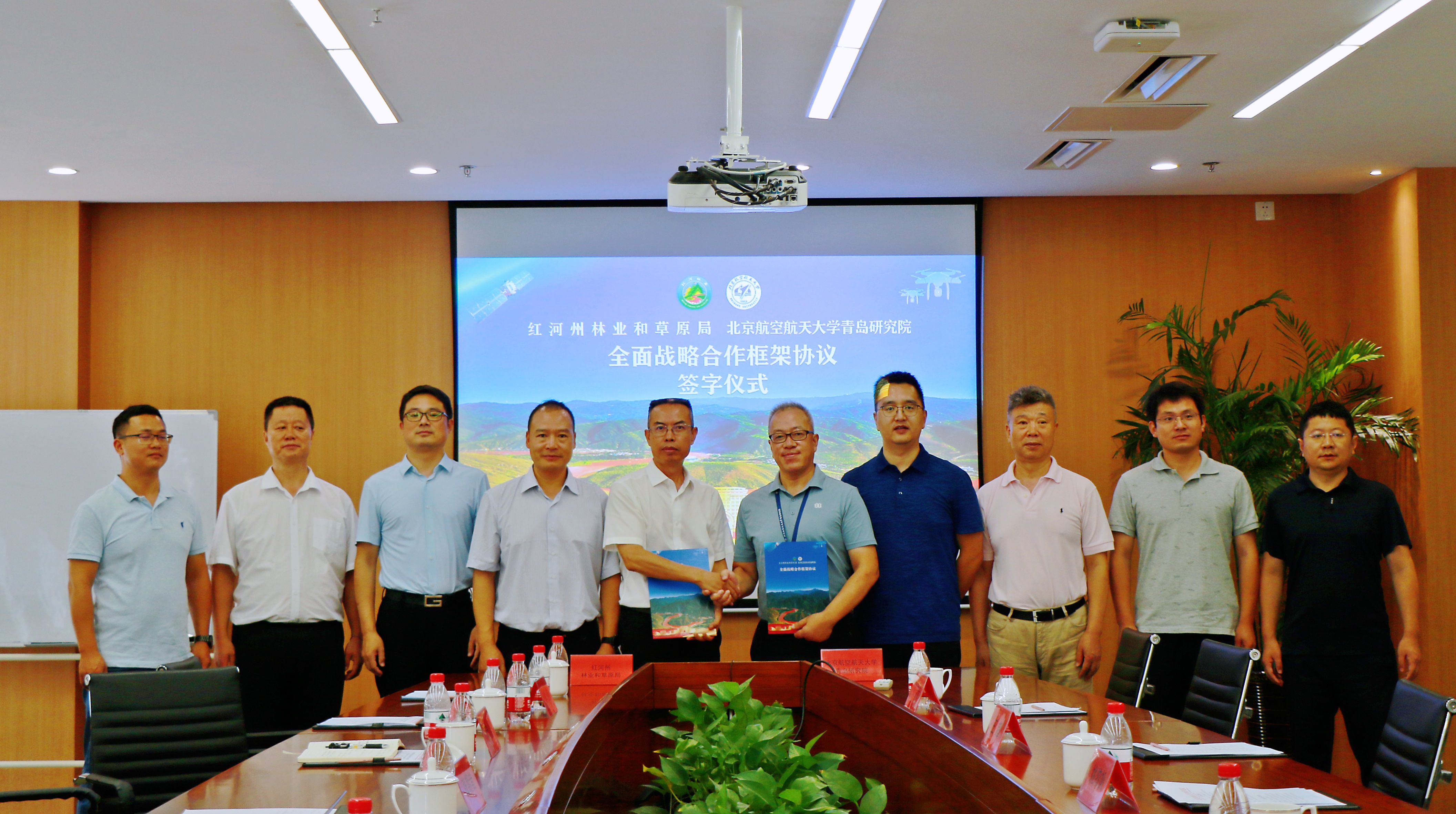 7月29日,红河州林业和草原局与北京航空航天大学青岛研究院在山东省青岛市签订全面战略合作框架协议,红河州林草局党组书记、局长杨云鸿,北京航空航天大学青岛研究院院长冯文全代表双方签署协议,双方代表共同见证签字仪式。