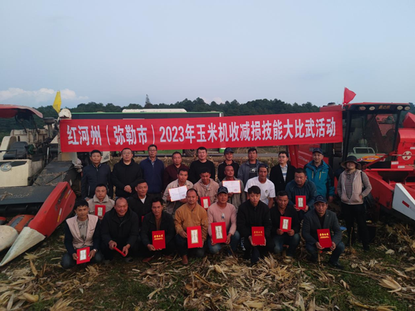 春种一粒粟,秋收万颗子,秋粮丰收,机收减损是重要一环。玉米是我州种植面积最大的主粮作物之一,本次玉米机收减损大比武活动是红河州为贯彻落实国家粮食安全保障有关方针政策和《红河州2023年主要粮食作物机收减损实施方案》有关要求的一项重要举措。本次比武紧紧围绕玉米等主要粮食作物机收减损的目标,通过比较和展示不同机收技术和机具的性能和效果,推广先进的机收技术和设备,全面提升机械使用效率和机手的操作技能,以赛促训,以赛提技,激发广大机手比学赶超、节粮减损的荣誉感使命感,营造广大农机手、全社会关注支持机收减损的浓厚氛围,引导全州广大农机操作手在秋收工作中精操作,保产量,颗粒归仓。这次大比武,机手的玉米机收平均损失率1.41%,比国家损失率标准低1.5个百分点以上。最后,经过紧张而热烈的角逐,蒙自市参赛选手张弟和弥勒市参赛选手黄分别获得籽粒和苞穗组第一名。