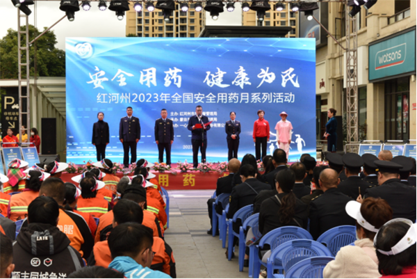 12月3日,红河州市场监督管理局在蒙自天马•南湖荟广场开展以“安全用药 健康为民”为主题的“全国安全用药月”系列宣传活动。
