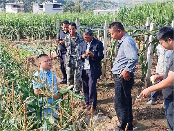 火龙果一直是石屏县大桥乡的主导产业。近年来,由于州内外火龙果种植面积扩大,导致大桥乡火龙果市场份额连年受到挤压。为提振农户种植信心、扩宽老百姓增收渠道,红河州农科院联合州财政局、石屏县农技推广中心、大桥乡人民政府,在石屏县大桥乡团山村开展了“火龙果+秋季水果玉米套种试验示范”和“秋季水果玉米引种试验示范”,并组织召开了“水果玉米栽培技术培训会”3期,培训采取室内教学和现场培训相结合方式,累计培训110余人次。