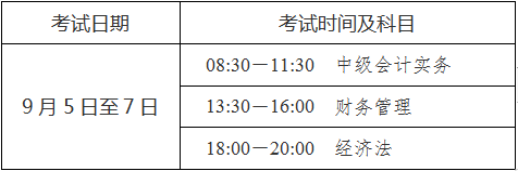 中级资格考试于2020年9月5日至7日举行,共3个批次,各科目具体考试时间如下: