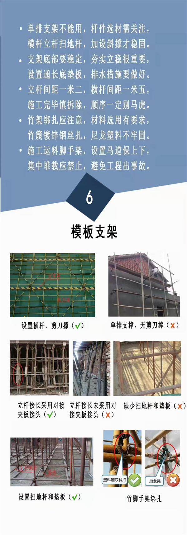另外,脚手板上严禁集中堆载砖块、混凝土或砂浆,避免造成安全事故。
