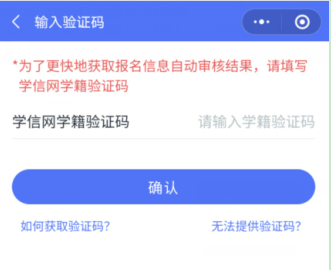 (3)在校生若因特殊情况无法提供学籍验证码,请点击“无法提供验证码?”进行下一步操作。