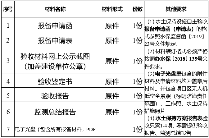 根据《中华人民共和国水土保持法》、《水利部关于加强事中事后监管规范生产建设项目水土保持设施自主验收的通知》(水保〔2017〕365号)、《国务院关于取消一批行政许可事项的决定》(国发〔2017〕46号)、《水利部办公厅关于督促有关生产建设单位开展水土保持设施自主验收工作的通知》(办水保〔2018〕60号)等相关规定:“生产建设项目水土保持设施验收由建设单位自行组织验收,水行政主管部门不再参加验收。验收合格后由建设单位在其官网或者其他公众知悉的网站公示水土保持设施验收材料,公示时间不得少于20个工作日,公示期结束后建设单位将水土保持设施验收材料报水行政主管部门进行备案。”