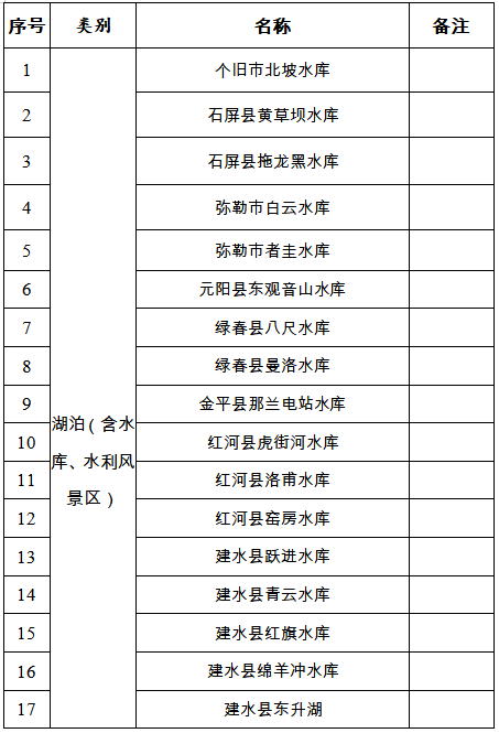 根据《云南省河长制办公室关于开展2023年省级美丽河湖申报工作的通知》(云河长办发〔2023〕72号)、《红河州美丽河湖建设行动实施方案(2019-2023年)》(红河州总河长令第5号)等要求,经县级自评、州级复核,拟确定下列12条河流(河段)、17个湖泊(水库、水利风景区)为红河州2023年度美丽河湖(详见附件),现予公示,接受社会公众监督。如有异议请在公示期内以来信、来电等形式反映至州河长办,单位反映情况须加盖公章,个人反映情况应署真实姓名,并留下真实的联系电话、地址、邮编。