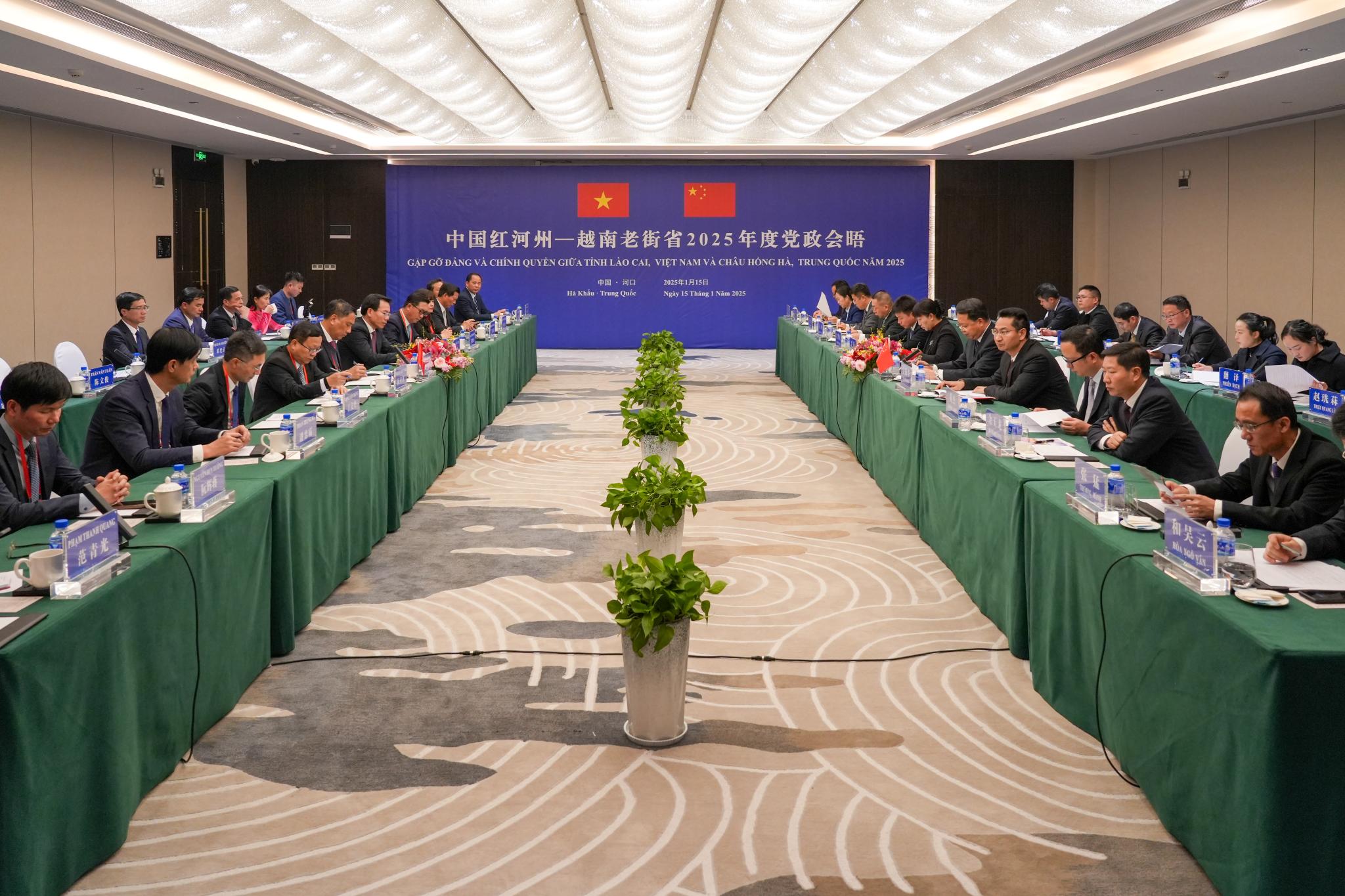 1月15日,红河州与越南老街省党政代表团在河口县举行春节互访和党政会晤,共叙深厚情谊,深化交流合作。