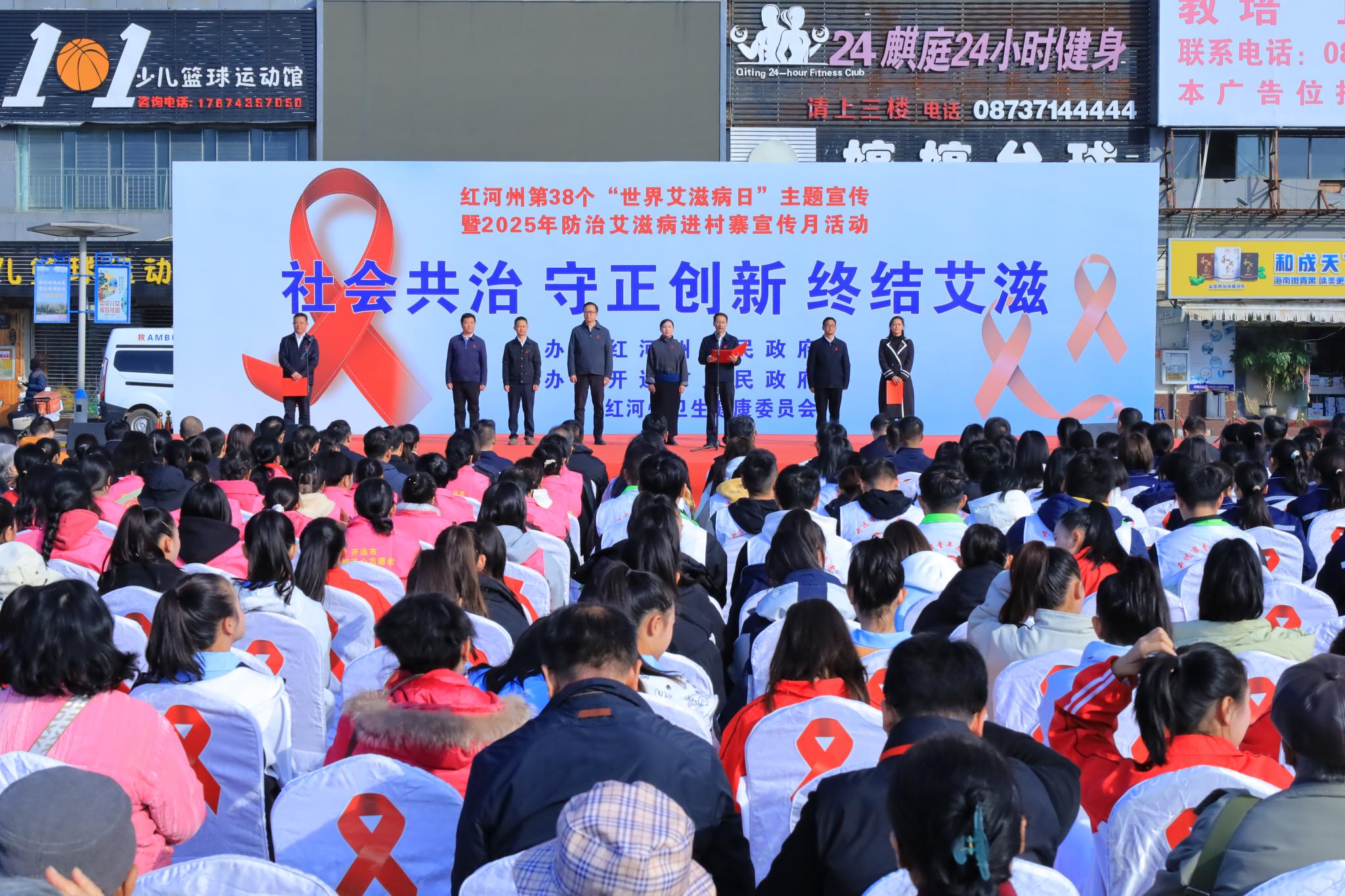 12月1日,红河州第38个“世界艾滋病日”主题宣传暨2025年防治艾滋病进村寨宣传月活动在开远市启动,今年的主题是“社会共治、守正创新、终结艾滋”。红河州委副书记、州长罗萍出席并宣布活动启动。
