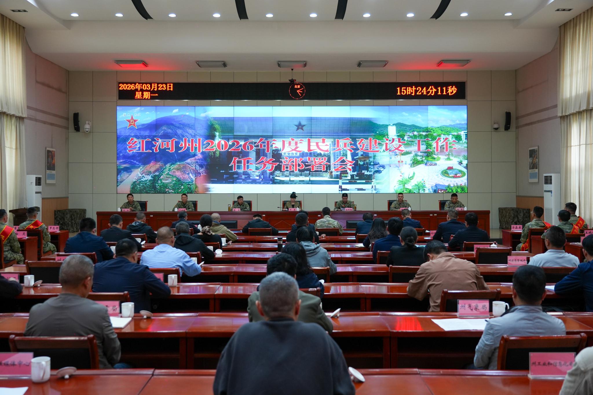 3月23日,红河州2026年民兵建设工作任务部署会在蒙自军分区召开。红河州委副书记、州长、州民兵建设工作领导小组组长罗萍,红河州委常委、蒙自军分区大校司令员、州民兵建设工作领导小组常务副组长余明权,蒙自军分区大校政治委员陈颉出席会议并讲话。