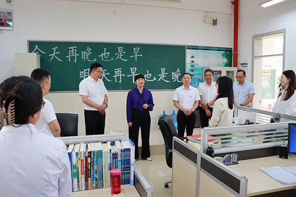 在州一中,罗萍走进教师办公室、标准化考场监控室、心理疏导室等地,实地查看并详细了解考场设置、后勤保障、秩序维护等备考工作,与学校负责人及教师深入交流,关心备考学子的心理状态,勉励备考师生坚定信心,以良好的心态迎接高考。