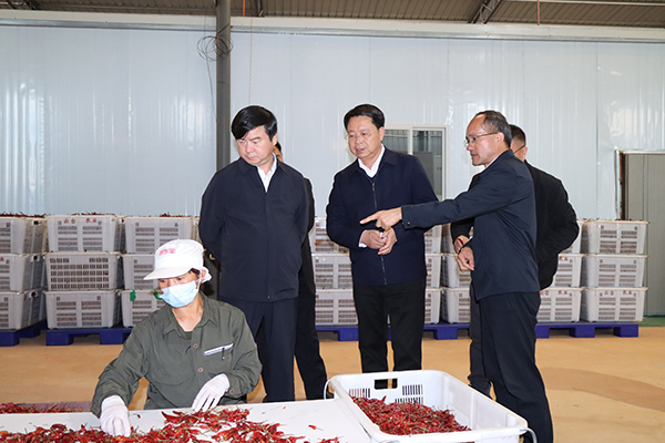 赵瑞君还深入龙武镇、哨冲镇、牛街镇等地,对基层党组织建设、农村人居环境整治提升、农文旅融合发展促农增收、绿美乡村建设等工作进行调研,与基层干部、企业负责人、农户等深入交流,分析困难问题,共话振兴发展。他指出,产业振兴是乡村振兴的重中之重,要立足地方资源禀赋,紧紧抓住露水草、辣椒等“土特产”,发展壮大特色富农产业,健全联农带农常态长效机制,持续壮大村集体经济,让农民分享更多产业增值收益,更好促进农民增收、企业发展。要加强系统谋划,学好用好“千万工程”经验,深度挖掘田园风光、乡土风情等乡村资源,大力保护传承传统民俗文化,丰富乡村旅游业态,加强策划设计和宣传,促进农文旅融合高质量发展。要加快乡村振兴人才队伍建设,持续推进“干部规划家乡行动”,激励各类人才返乡创业就业,认真总结推广好经验、好做法,以点带面推进生态宜居和美乡村建设取得新成效。