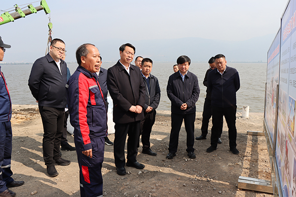 赵瑞君一行先后前往异龙湖北岸受损湖滨生态缓冲带保护修复项目点、“三个零”项目规划区、马宝龙、松村豆制品加工园区等地,实地察看项目建设、异龙湖面源污染治理、农业产业结构调整、园区污水处理等工作情况,并召开调研座谈会听取相关工作情况汇报,现场研究异龙湖保护治理工作存在问题及对策措施。