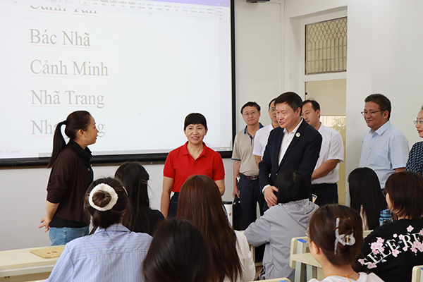 在红河学院博文楼,罗萍一行走进少数民族语言文学专业和越南语专业教室,与师生亲切交谈,详细了解相关专业的特色优势以及人才培养情况。罗萍寄语青年学子,要紧紧抓住时代赋予的机遇,在专业领域内继续深造学习,为推动少数民族文化传承和促进对外交流作出更大贡献。