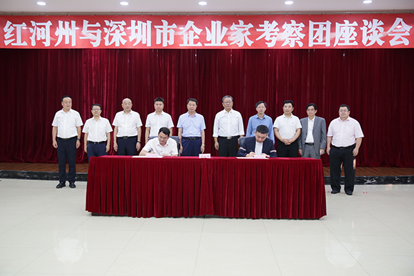 9月19日,红河州委书记赵瑞君在蒙自市与到红河州考察的深圳市企业家考察团座谈交流,并见证红河州与部分企业签订项目合作协议。