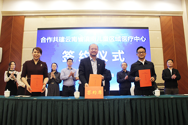 10月27日,红河州卫生健康委员会与上海交通大学医学院附属上海儿童医学中心共建云南省滇南儿童区域医疗中心框架协议签约仪式在蒙自举行。副州长周永瑜出席签约仪式。