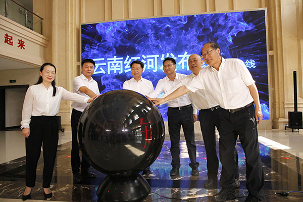 与会领导共同触摸启动球,见证“云南红河发布”系列平台上线