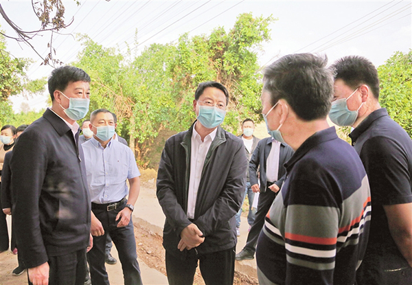 赵瑞君(左三)调研大屯海周边村庄农村污水截污工程建设情况