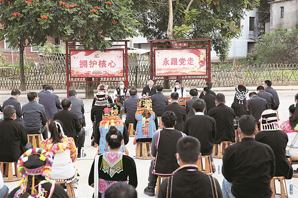 12月2日,红河州委书记赵瑞君深入金平苗族瑶族傣族自治县金水河镇隔界村,向当地基层干部和苗族、瑶族、傣族、哈尼族、拉祜族、布朗族群众等宣讲党的十九届六中全会和省第十一次党代会精神。