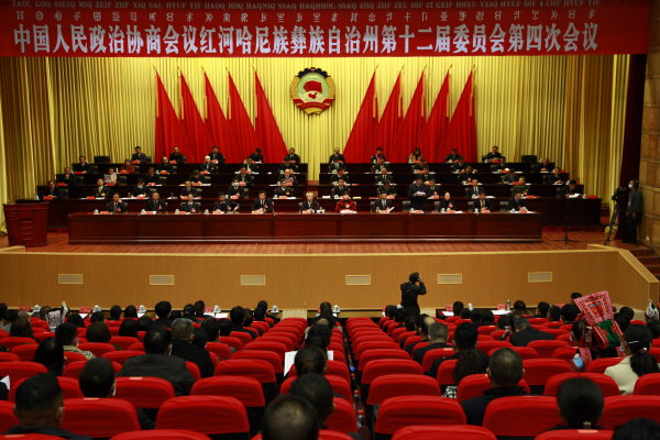1月17日上午,中国人民政治协商会议红河哈尼族彝族自治州第十二届委员会第四次会议在蒙自隆重开幕。