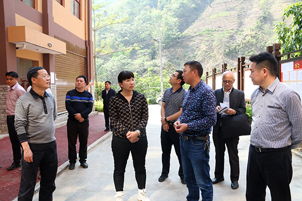 罗萍(前排左二)在屏边县湾塘乡调研易地扶贫搬迁工作