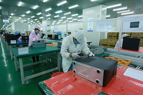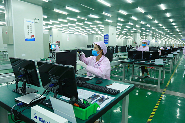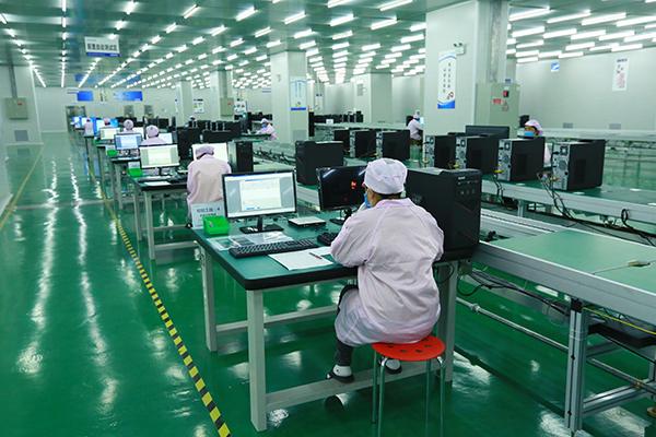 生产线上的工人正在紧张有序地生产