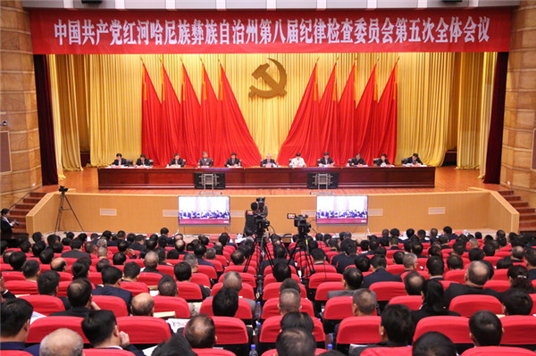 1月19日,州纪委八届五次全会在蒙自召开。州委书记姚国华在会上强调,要以习近平新时代中国特色社会主义思想为指导,深入学习贯彻党的十九大和十九届二中、三中、四中全会精神,全面贯彻落实十九届中央纪委四次全会、省纪委十届五次全会和州委八届六次全会精神,增强“四个意识”、坚定“四个自信”、做到“两个维护”,坚持稳中求进工作总基调,协助党委深化全面从严治党,坚持和完善党和国家监督体系,强化对权力运行的制约和监督,进一步肃清秦光荣流毒及和建案恶劣影响,一体推进不敢腐、不能腐、不想腐,在坚持和完善中国特色社会主义制度、推进国家治理体系和治理能力现代化中,充分发挥监督保障执行、促进完善发展作用,建设高素质专业化纪检监察干部队伍,推动新时代纪检监察工作高质量发展,为决胜全面建成小康社会、建设新时代团结进步美丽红河提供坚强保障。