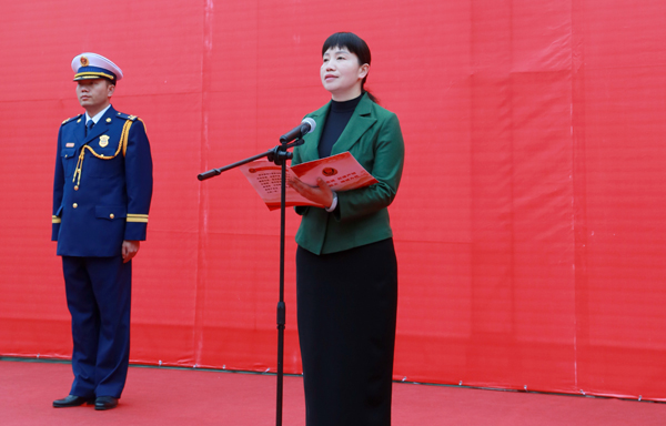 罗萍代表州委、州政府向长期战斗在防火、灭火和抢险救援一线、为全州经济社会发展保驾护航的广大消防指战员表示衷心的感谢,向被首次授予消防救援衔的个人表示热烈祝贺。她指出,近年来,全州消防救援队伍紧紧围绕州委、州政府的部署要求,聚焦防控风险、主动服务发展,着力改革创新、夯实基层基础,有力推进火灾防控、应急救援和队伍建设各项工作创新发展。此次迎旗授衔和换装仪式的举办,昭示着全州消防救援事业踏上新的征程,标志着一支崭新的消防救援队伍整装再出发。