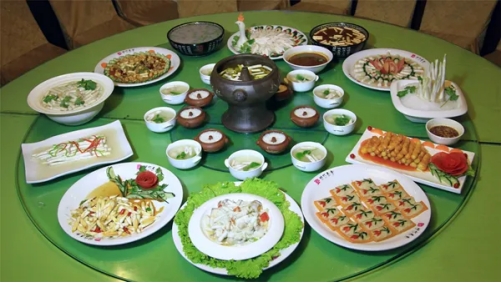 草芽宴:共有15个菜品,包括象形苞谷、炖盅草芽圆子、糖醋草芽、草芽排骨、锅贴草芽、三丝扒草芽、孔雀开屏、凉拌草芽、芙蓉草芽、气锅鸡草芽、冰山草芽、红烧牛肉草芽、草芽莲藕粥、宫爆肚头、小白龙过江,醇香、脆嫩是每道菜的主要特色。