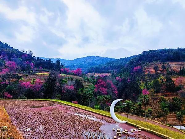樱花谷坐落于堵波村和妥索村之间,常年云雾缭绕、溪流潺潺、梯田环抱,是一个世外桃源般的山谷。每年冬季,当其他城市慢慢进入冬天,专属云南的“春天”就已经开始。樱花谷村前屋后漫山遍野长满樱桃林,每年二三月火红的樱花怒放,像满天的彩霞铺满沟谷,或粉或红的樱花瓣落在梯田的水里,静静地漂着,任谁都打搅不了那份幽静。