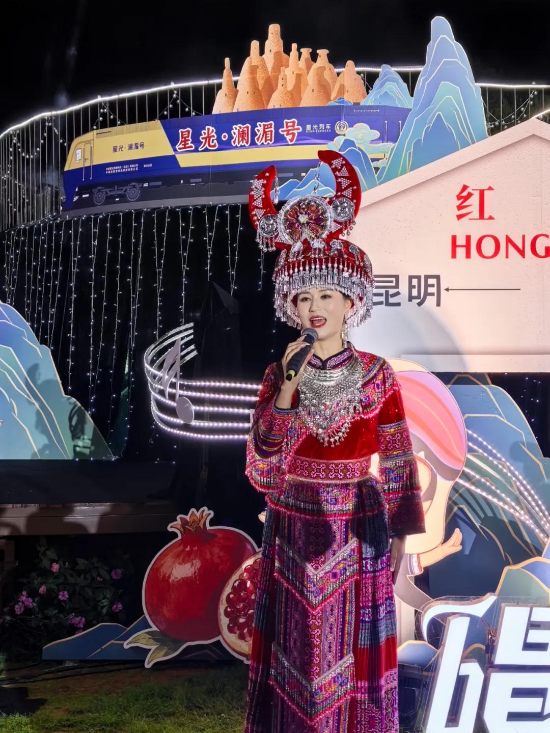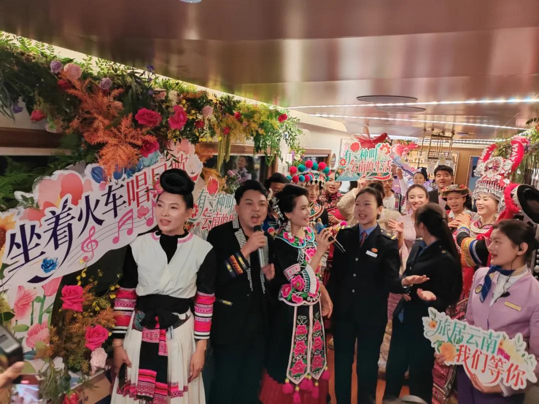 11月18日,由云南省文化和旅游厅、红河州人民政府、国铁昆明局联合开展的“坐着火车唱民歌”文旅主题推广活动正式启动,来自云南省花灯剧院、昆明市民族歌舞剧院等团队的数十名歌唱演员,在“星光·澜湄号”列车上和蒙自南湖畔,通过“一首民歌、一位歌手、一个推介”的方式,向公众推荐“坐着火车游云南”精品线路和特色旅居目的地。