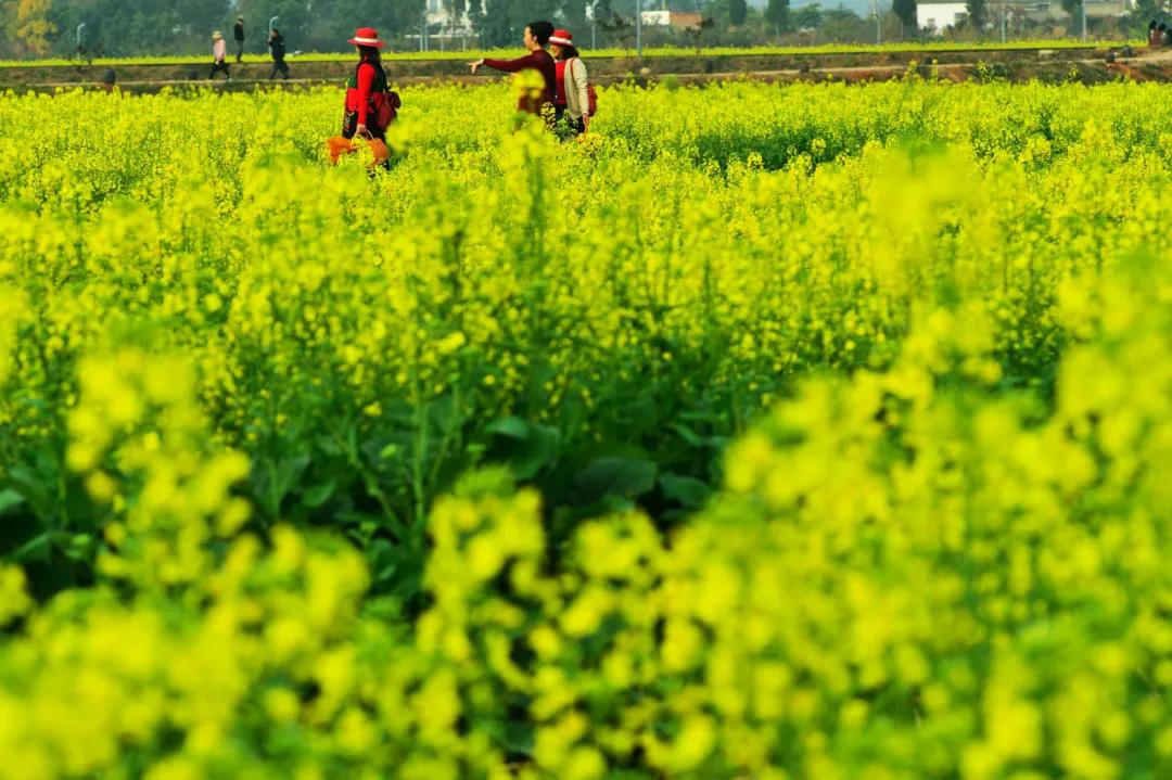 今年的建水稻田公园,油菜花开得比往年更晚一些。双龙桥畔,千亩油菜花肆意盛放。阳光洒在成片的油菜花上,金色的光芒与翠绿的茎叶交相辉映,成群结队的蜜蜂、蝴蝶在花丛中嬉戏,三五成群的游客在花海中拍照打卡,共同绘就了一幅乡村美景。你可以置身花海中,看金黄花田与古桥倒影相融,随手一拍都是治愈系大片。