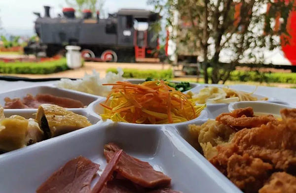 赏完花,还可以到1909广场上的“米轨时光”餐厅吃一碗菊花米线。
