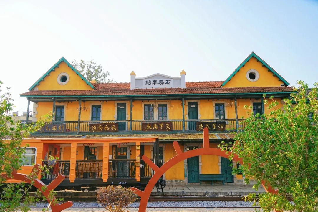 如今,石屏火车站保存得较为完好,红瓦、黄墙、绿窗的二层小楼,中西合璧的建筑风格,仿佛诉说着曾经的繁华。站房旁的棕榈树随风摇曳,为这座老站增添了几分迷人的法式风情。