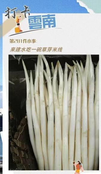 在红河建水的一天,要从一碗草芽米线开始。草芽是备受当地人喜爱的一种蔬菜,洁白清香又形似象芽的草芽又称象芽菜,是生长在当地水域的香蒲的根茎,味道鲜甜,口感脆嫩。