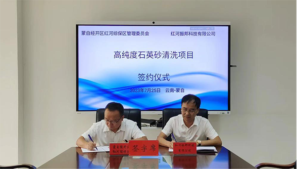 7月25日,蒙自经开区红河综保区举行招商引资项目集中签约仪式。签约仪式上,蒙自经开区红河综保区分别与上海鼎泰万邦材料有限公司、红河振邦科技有限公司、东莞市森茂电子科技有限公司签约年产1万吨单晶热场材料及1万套单晶热场产品项目、高纯度石英砂清洗项目、手机摄像头结构件全自动生产基地建设项目,3个项目总投资约11.3亿元,项目全部建成达产后,将实现年产值17亿元、年纳税1.1亿元。